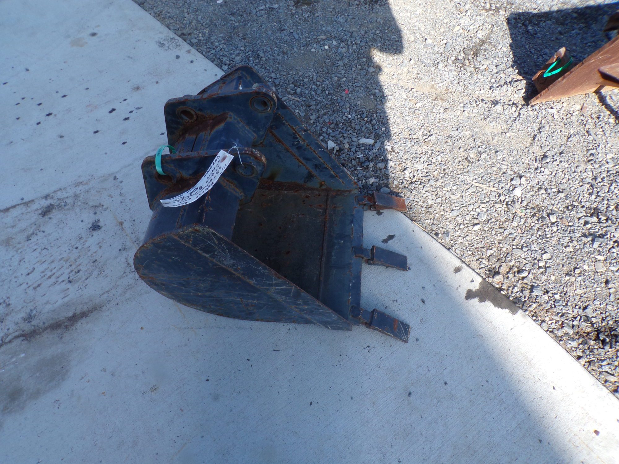 #9499999 For sale is a 16 inch wide Bobcat brand excavator backhoe bucket. It measures 5 1/4 inches between the ears and it is made for 1 inch pins size and the holes are 6 inches apart. Good bucket with very little use on it. $295.00