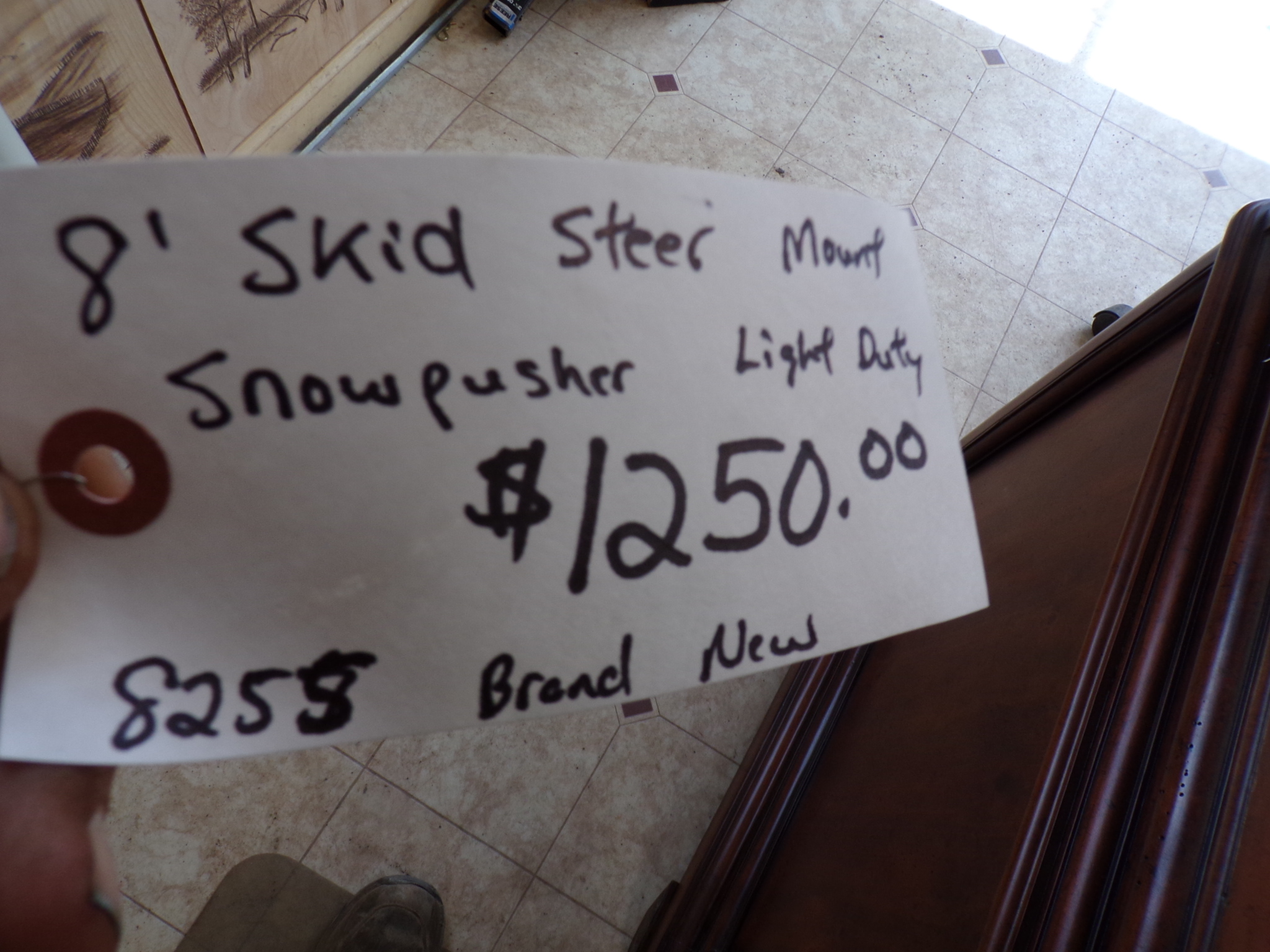 #8255 For sale is a 8 ft wide universal quick tach skid steer style snow pusher. It is a light duty version and would work great for a homeowner wanting to clear his own driveway. $1250.00